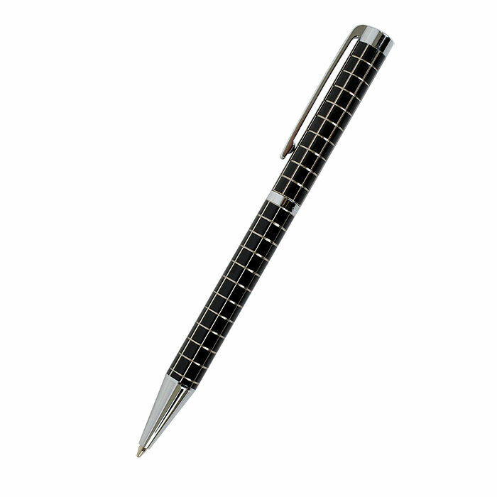 Ручка в футляре механическая (поворотная) Prato 1,0мм металл (черно-серебристый корпус) синяя (2361)