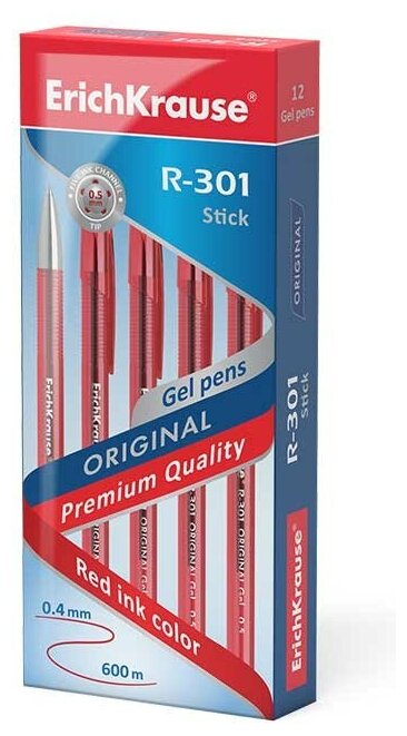Ручка гелевая ErichKrause R-301 Original Gel Stick 0.5, цвет чернил красный (в коробке по 12 шт.)