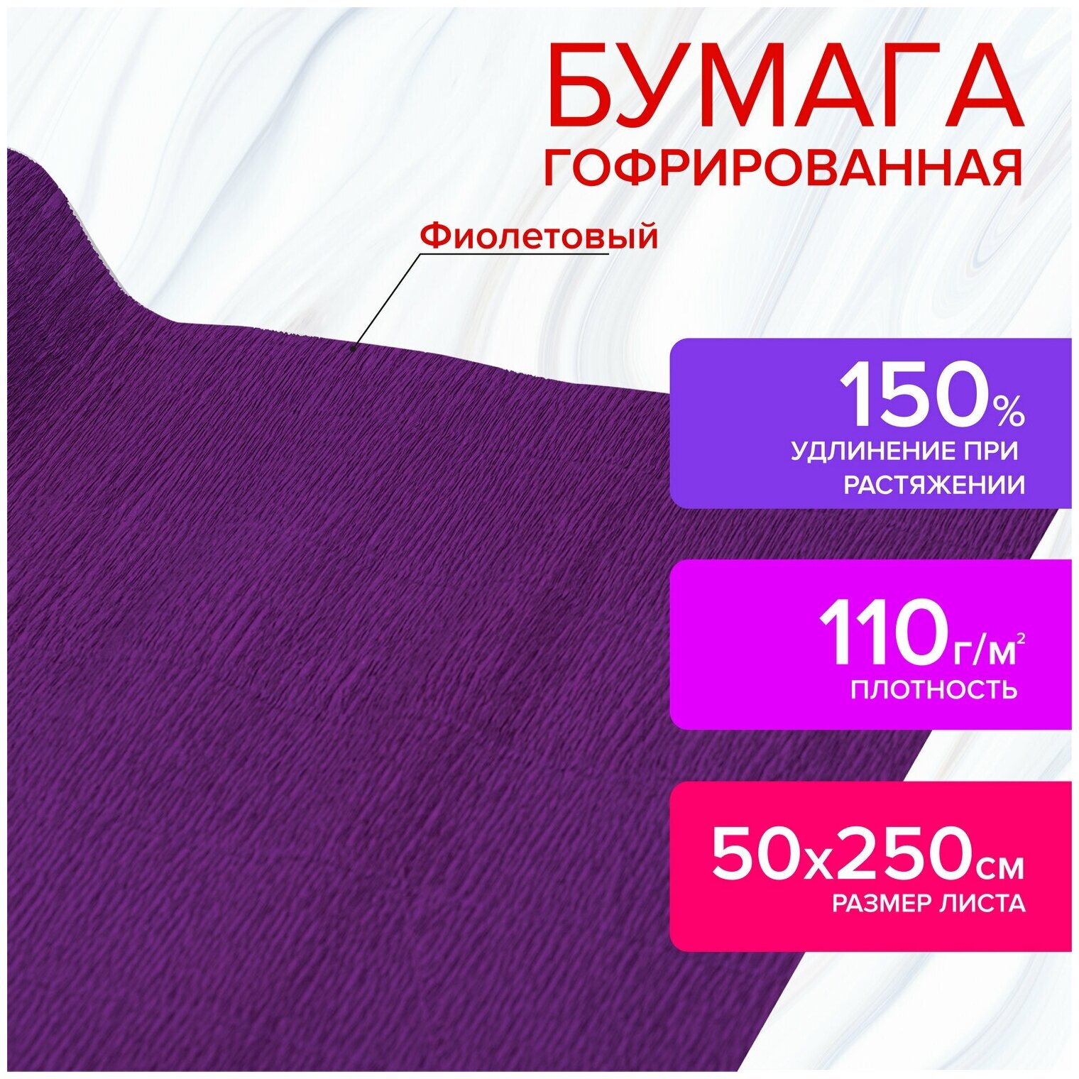 Купить Бумага гофрированная (креповая) для флористики 110 г/м2, фиолетовая, 50х250 см, остров сокровищ, 112545