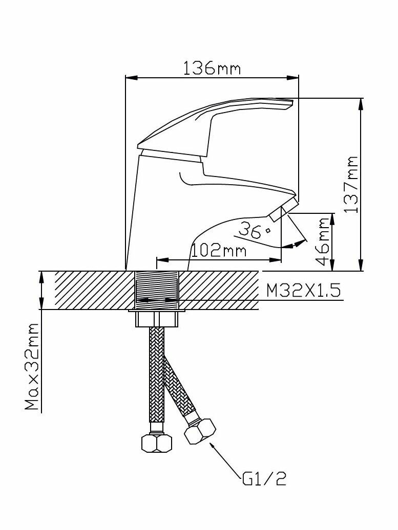 Смеситель на раковину Potato P1007 с монолитным изливом, картридж 40 мм, хром, крепление гайка интересное: