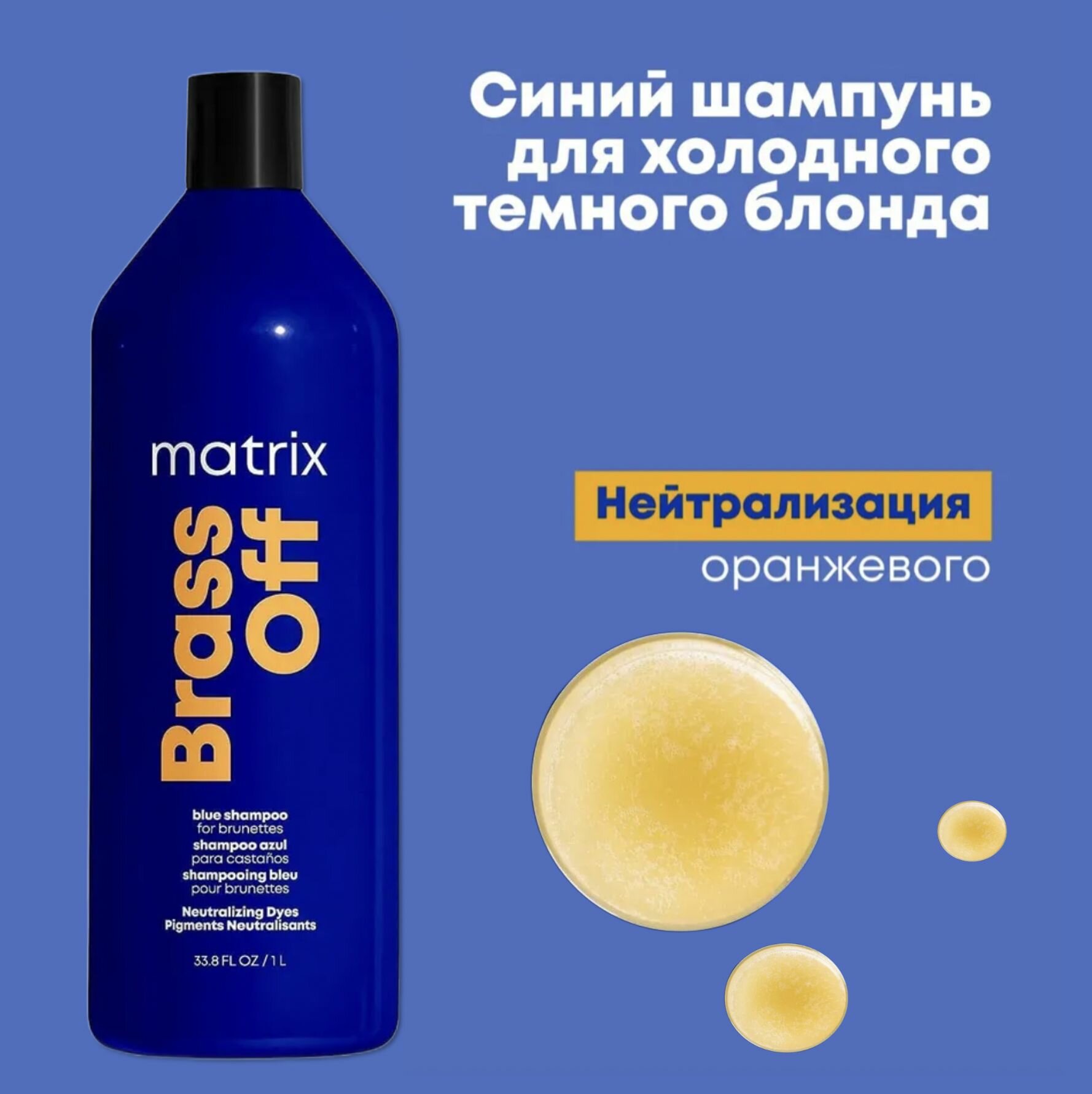 Шампунь для волос с антижелтым эффектом Matrix Total Results Brass Off Холодный блонд для нейтрализации желтизны у блондинок 5-8 уровней тона 1000 мл
