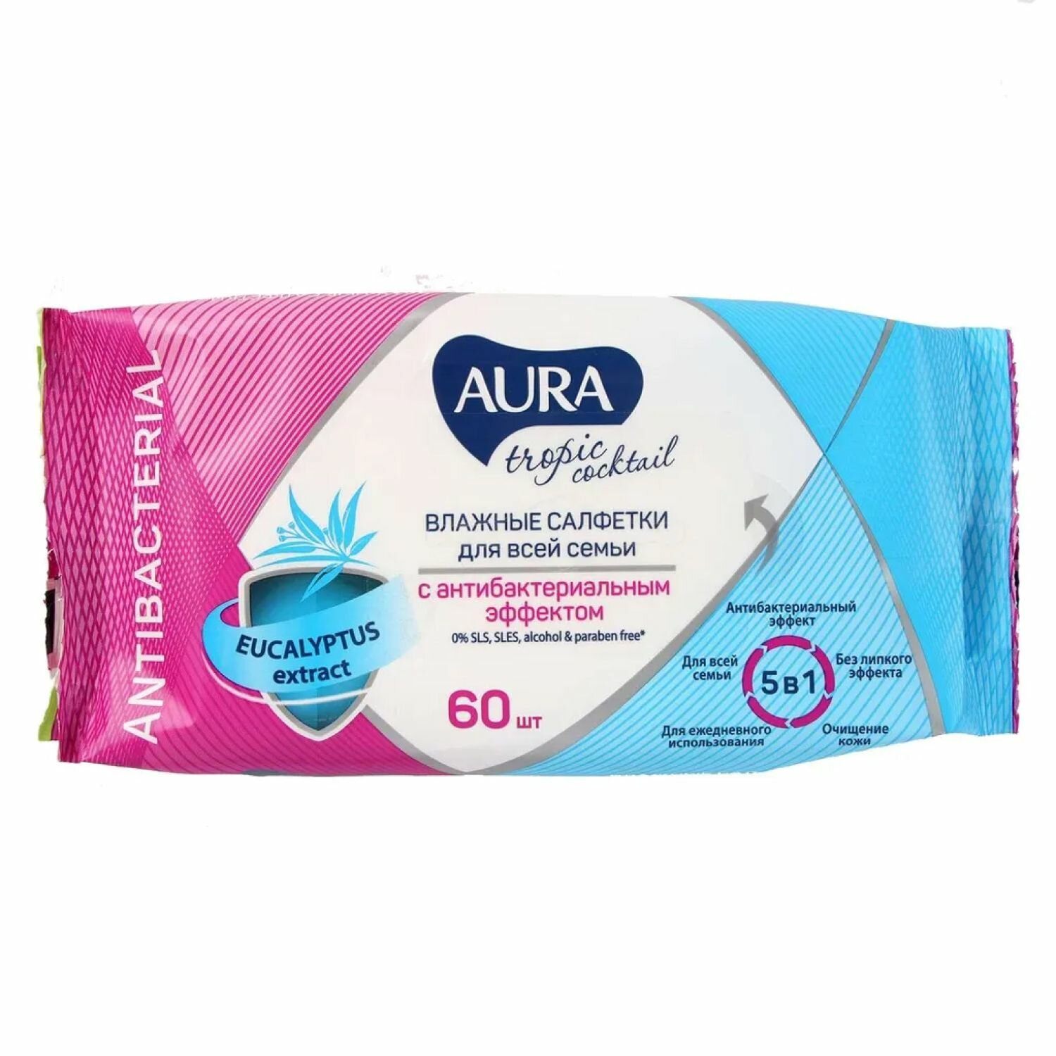 Купить Салфетки влажные AURA Тропический коктейль 60шт Антибактериальные