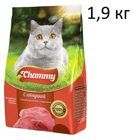 Корм сухой для кошек CHAMMY с говядиной, 1,9кг