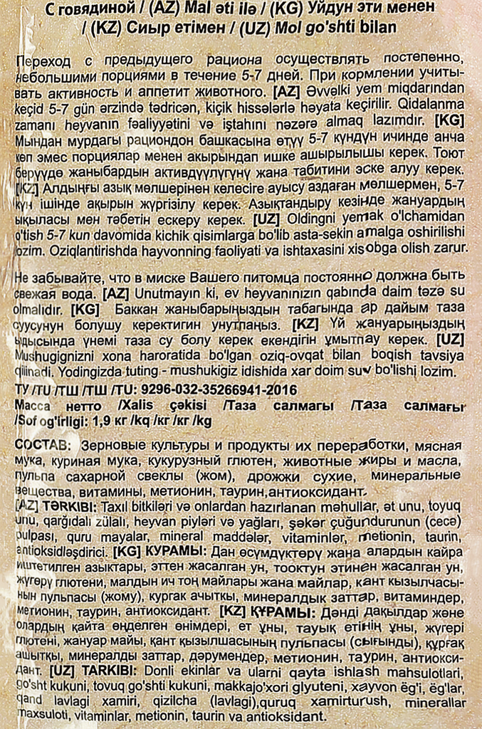 | Вкус | говядина |