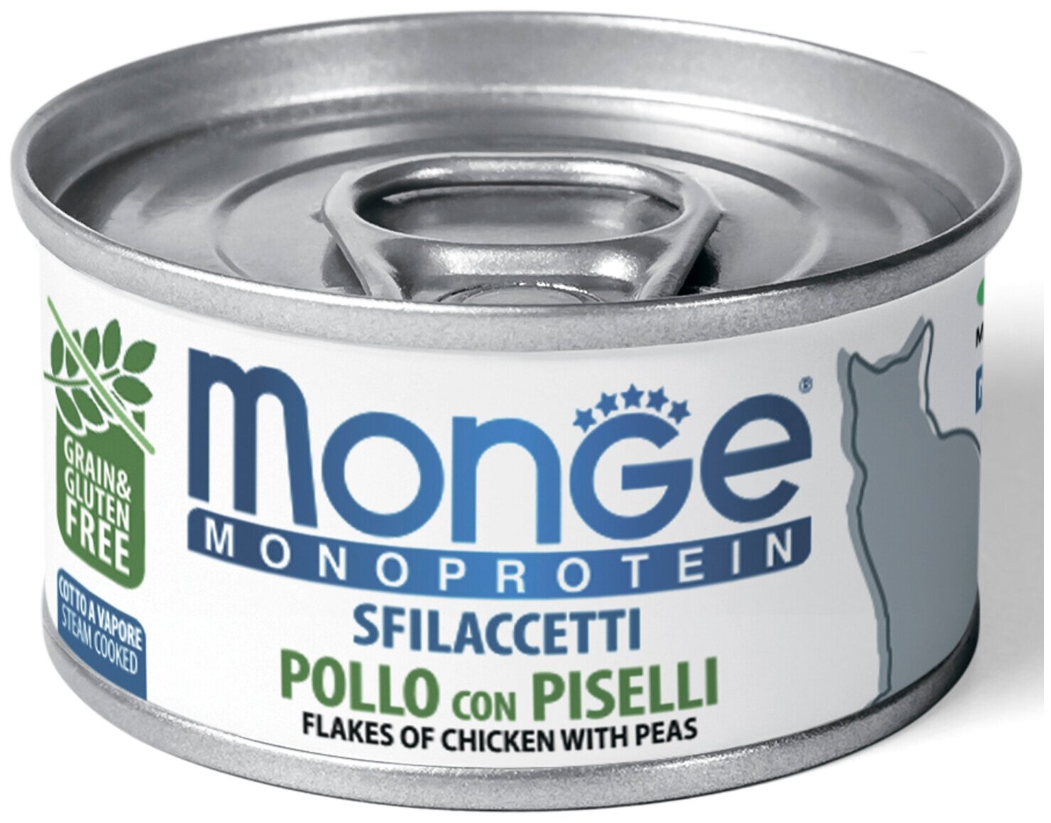 Консервы Monge Cat Monoprotein мясные хлопья для кошек с курицей и горохом 80г