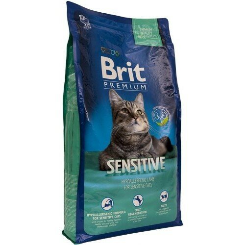 Корм Brit Premium Sensitive для кошек с чувствительным пищеварением, с индейкой и ягненком, 8 кг