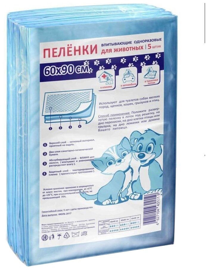 СохранитьПеленки для собак впитывающие Мedmil Petmil 60х90 см 60 см 90 см 5 шт. голубой интересное: