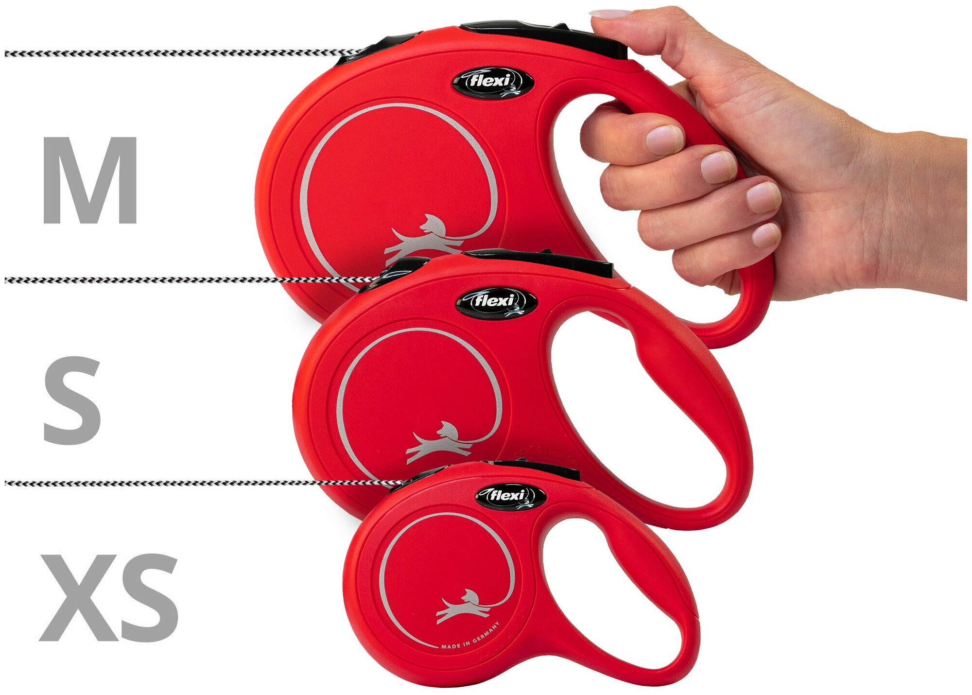FLEXI NEW CLASSIC CORD – Флекси тросовый поводок-рулетка для животных, 5 м, размер S, красный (1 шт)