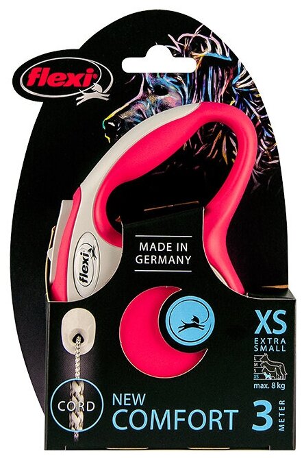 Рулетка-поводок д/собак Flexi New Comfort M Cord 8м до 20кг трос розовый 1/1