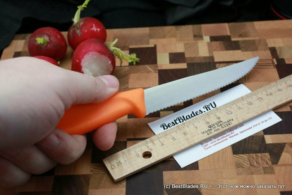 | Плюсы: | Оптимальный выбор для кухни, недорого и очень качественно. Лучше купить один такой нож, чем две китайские поделки. |
