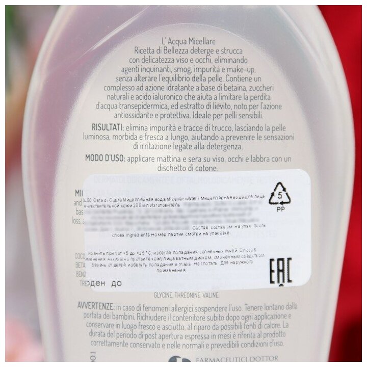 Cera di Cupra мицеллярная вода, 200 мл, 235 г