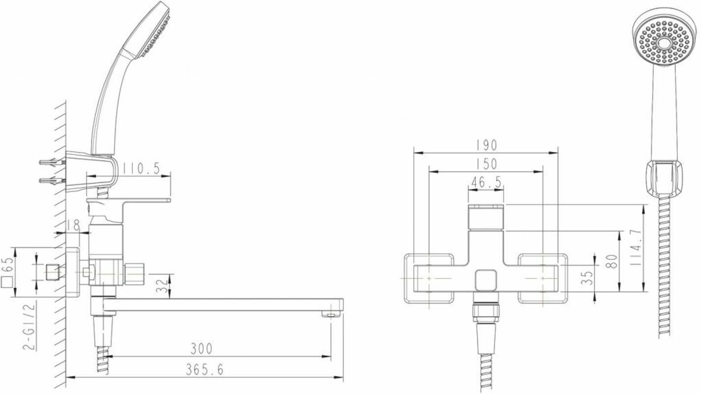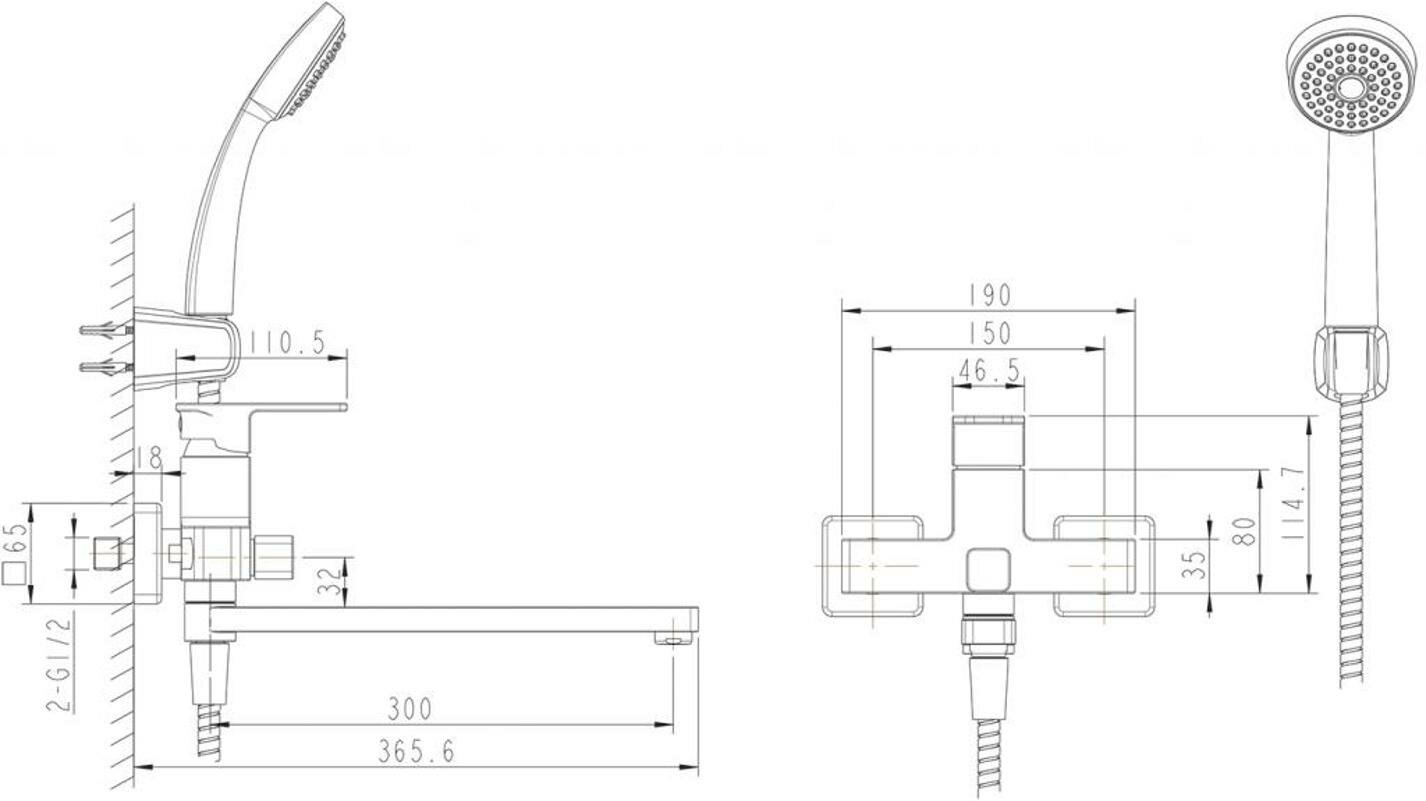 Смеситель для ванны с душем Bravat RIFFLE длинный нос F672106C-LB