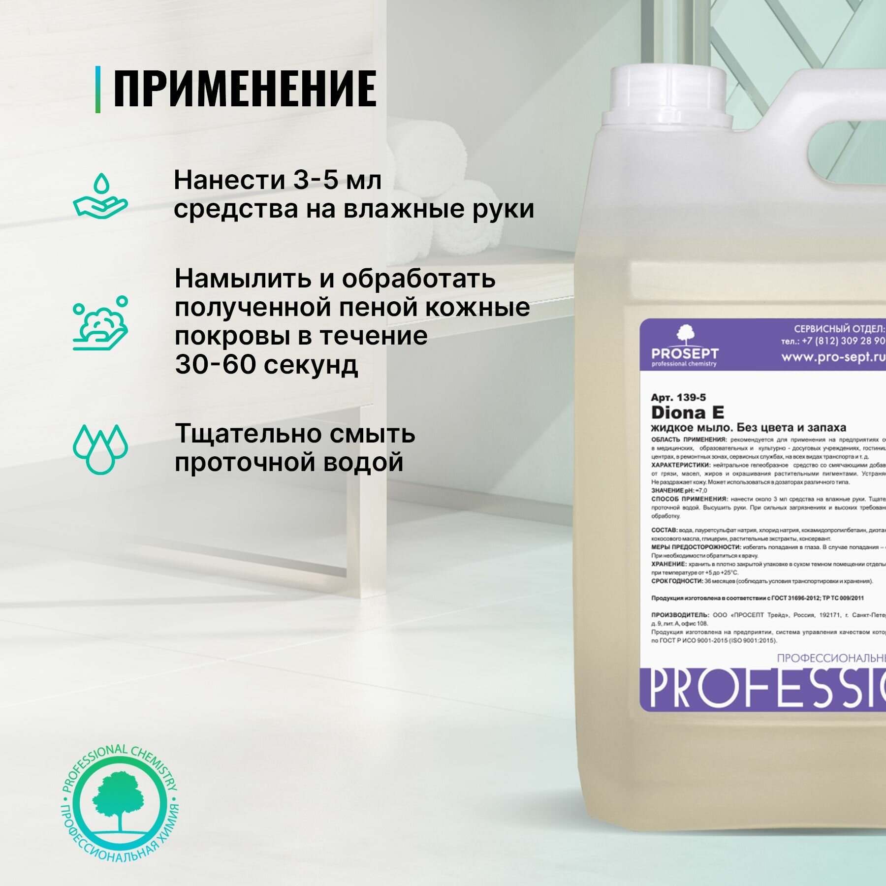 Жидкое мыло Prosept Diona E без красителей и ароматизаторов, 5 л