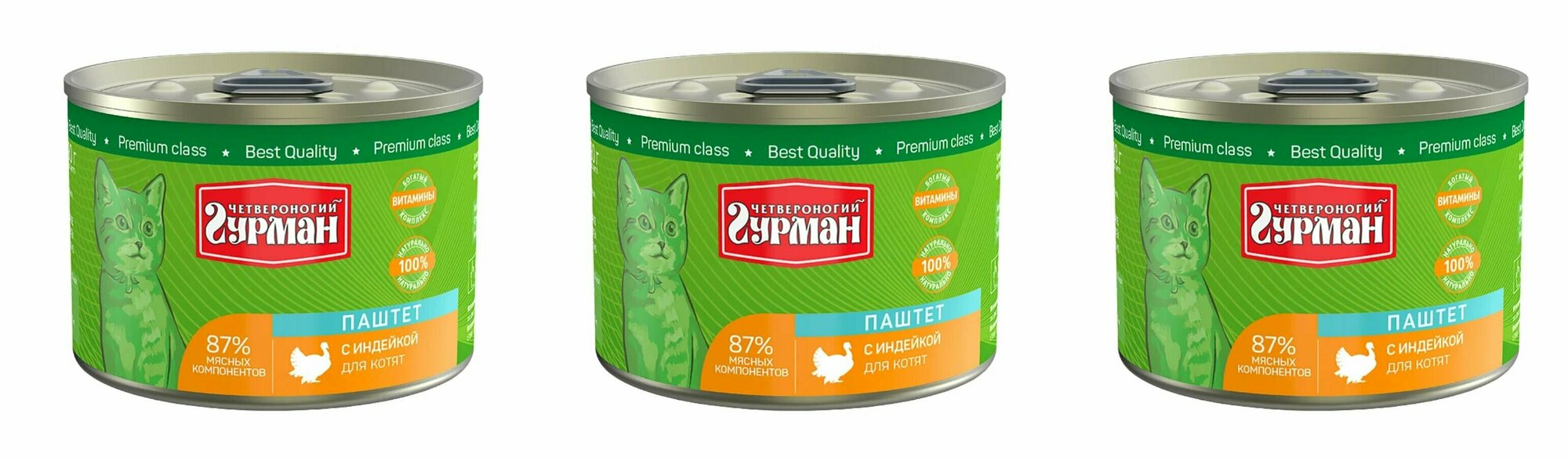 Корм Четвероногий гурман (паштет) для котят, с индейкой, 190 г x 12 шт