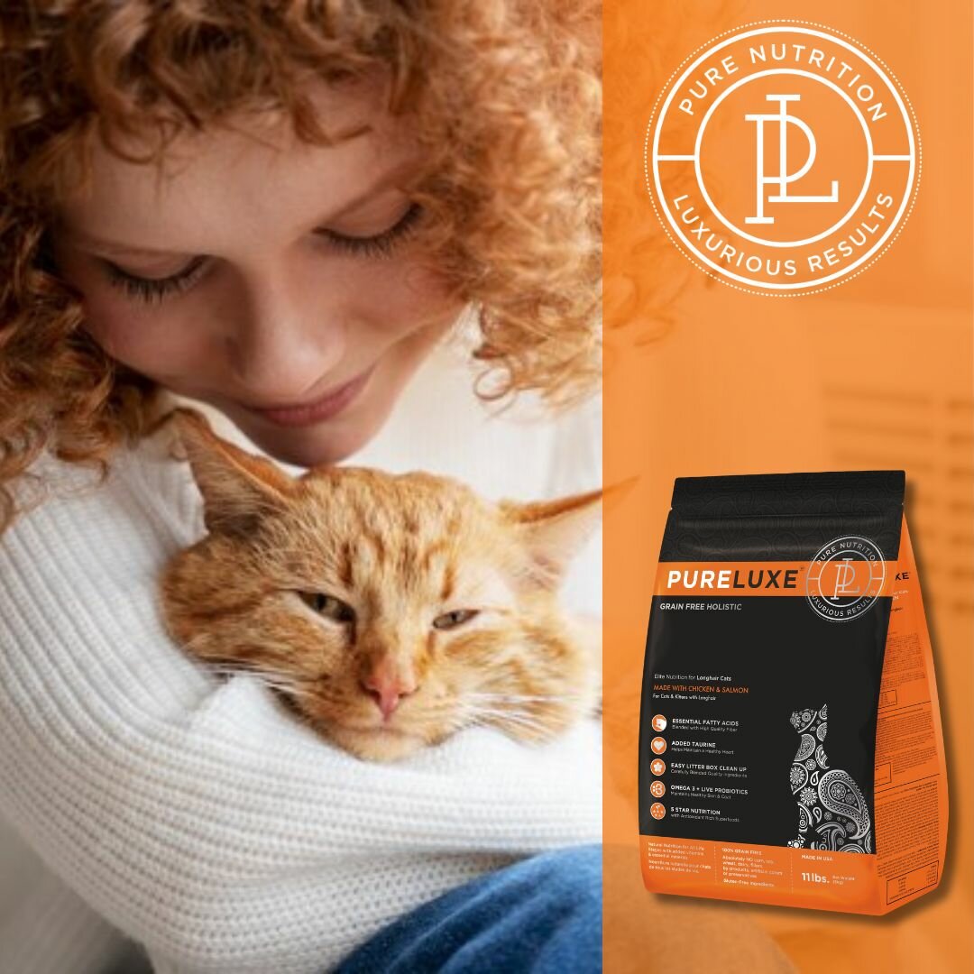 Корм для кошек сухой PureLuxeдля длинношерстных кошек и котят с курицей и лососем, 1,5 кг