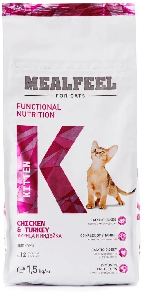 Купить Mealfeel Functional Nutrition Kitten корм для котят до 12 месяцев, с курицей и индейкой, 1,5 кг