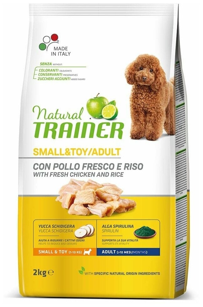 TRAINER NATURAL SMALL & TOY CHICKEN & RICE для взрослых собак маленьких пород с курицей и рисом (2 кг)
