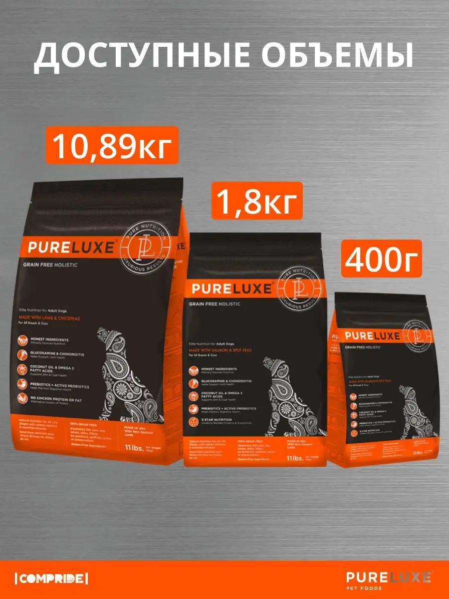 Купить Сухой корм для собак PureLuxe беззерновой, лосось, с горошком 1 уп. х 1 шт. х 400 г