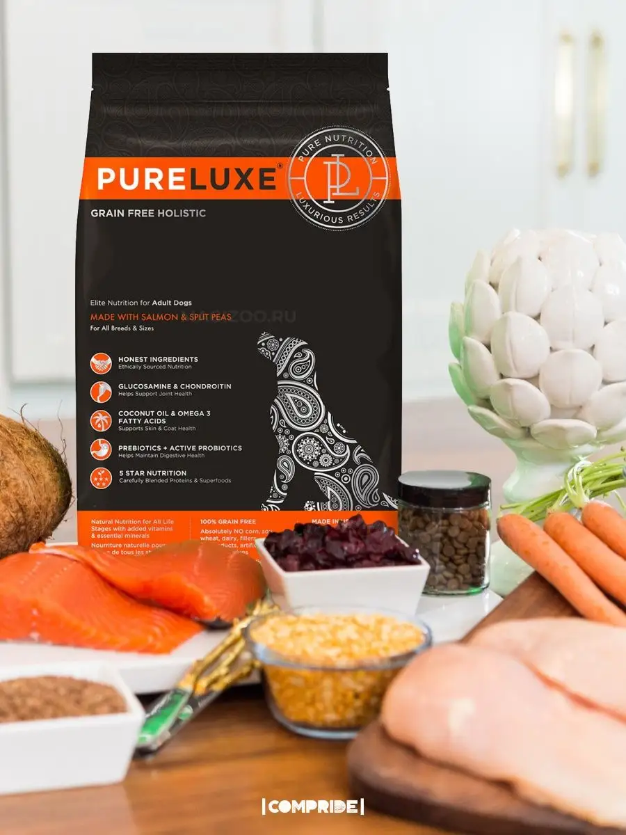 PureLuxe Dog Adult Salmon & Split Peas Grain free / Сухой Беззерновой корм ПьюаЛюкс для взрослых собак Лосось горошек 1,81 кг