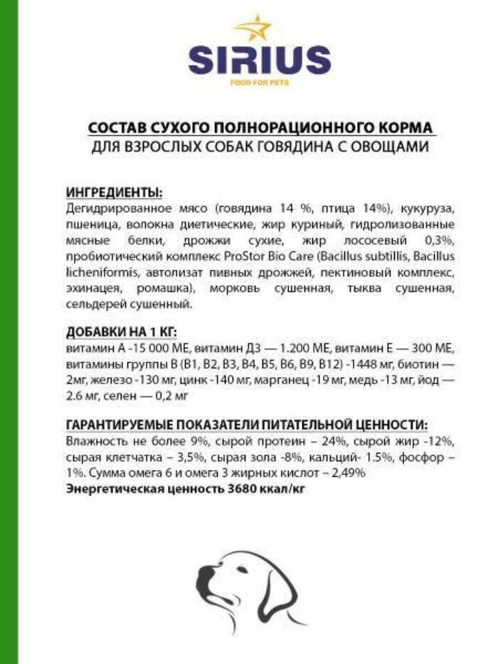 СохранитьSirius Сириус сухой полнорационный корм для взрослых собак Говядина с овощами 15 кг интересное: