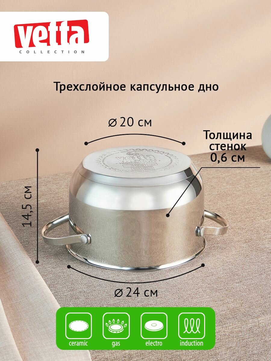 Кастрюля VETTA Бирмингем 20х12,5см, 3,6л, индукция (822-137)