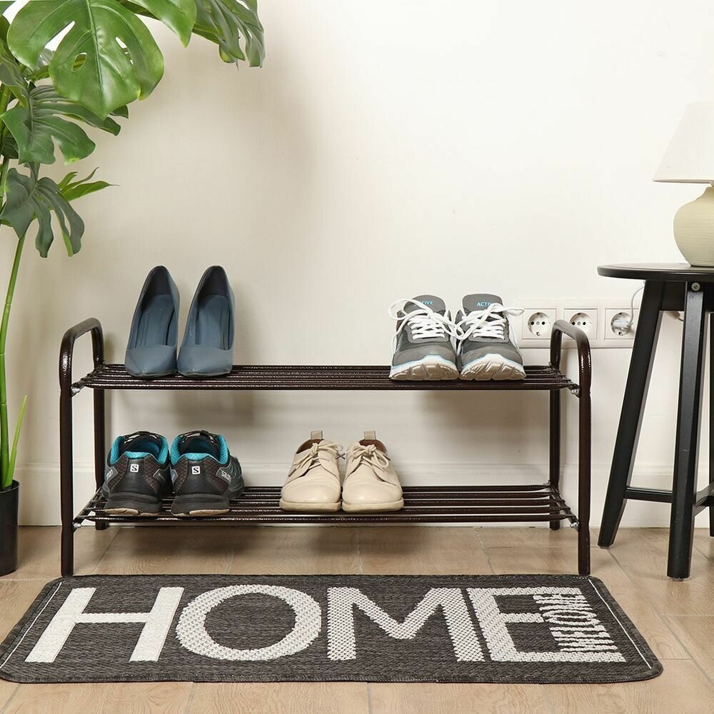 Этажерка для обуви/ обувница в прихожую Ника ЭТК2/Ч (подставка с двумя полками, металл, разборная, низкая, Black)