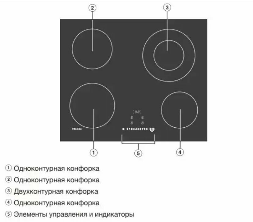| Конфорок двухконтурных | 1 |