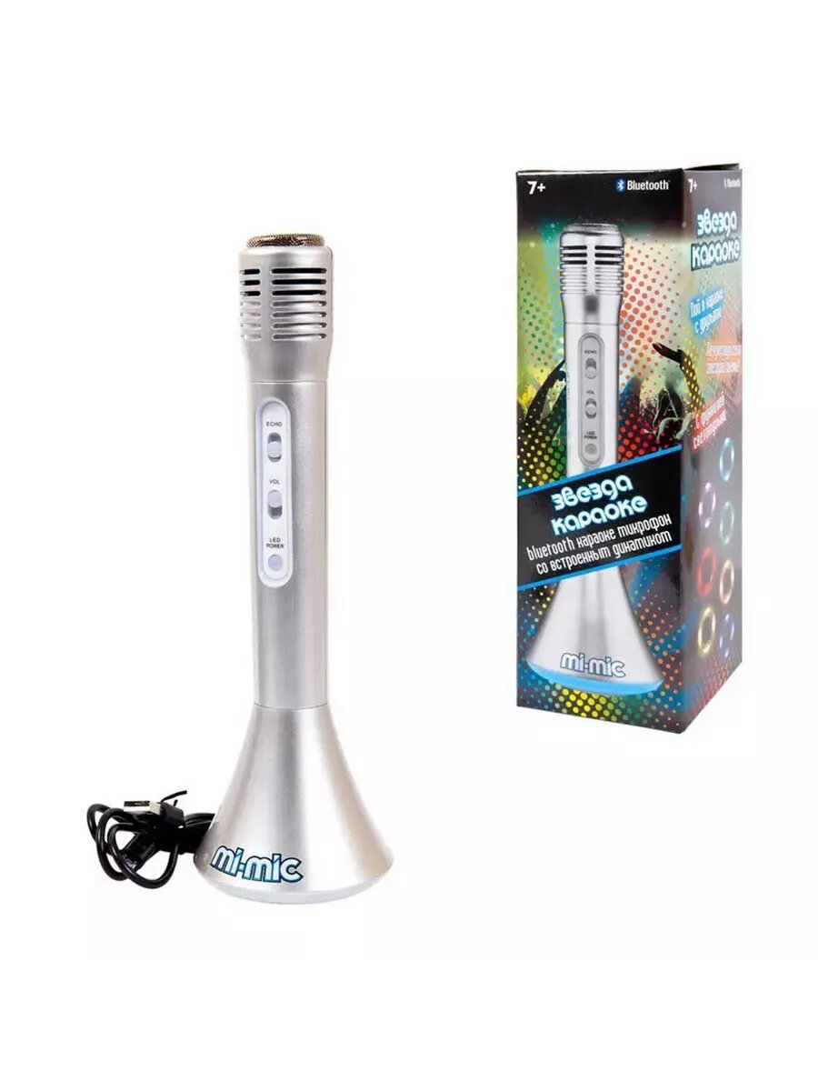Микрофон Звезда караоке со встроенным динамиком, серебряного цвета