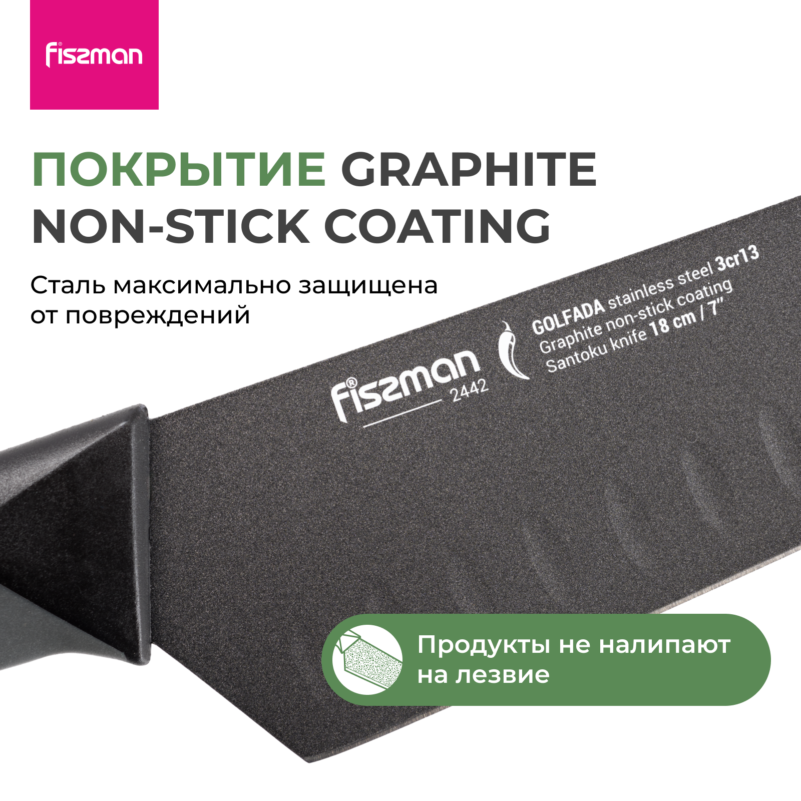 2442 FISSMAN Нож Сантоку GOLFADA 18см с покрытием Graphite (3Cr13 сталь)