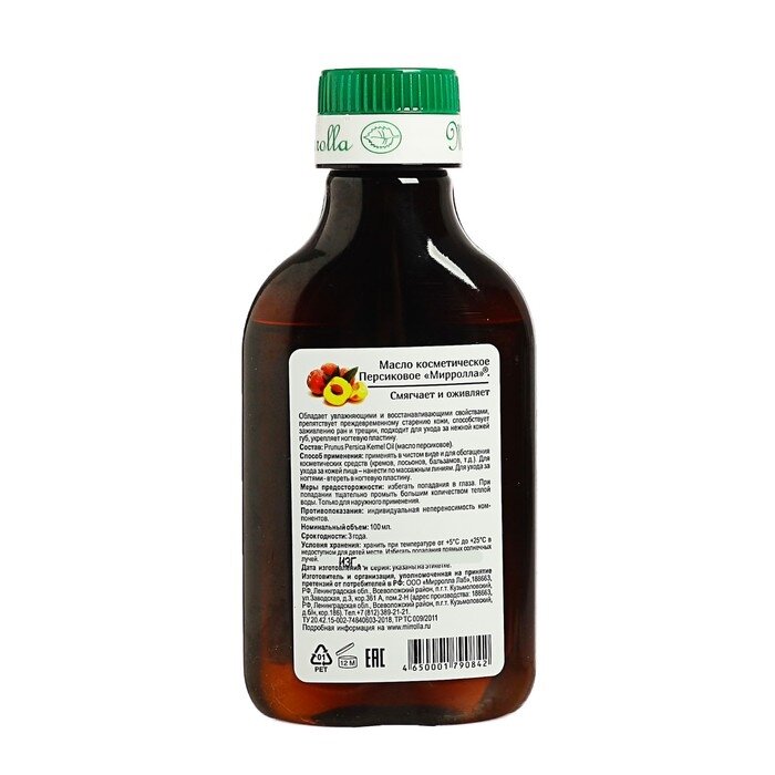 Масло косметическое Персиковое Mirrolla, 100 мл. 4306585