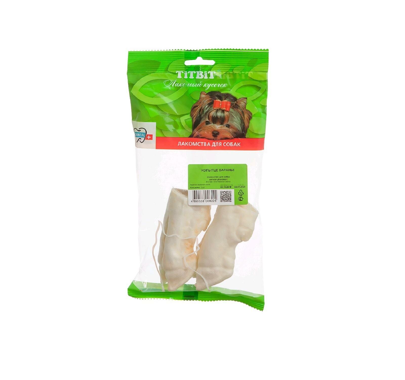 Копытце баранье TitBit для собак, мягкая упаковка, 2 шт, 103 г