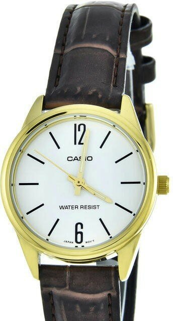 LTP-V005GL-9B Casio наручные часы кварцевые WR30 (3 атм) женские золотой, коричневый подсветка стрелок минеральное стекло