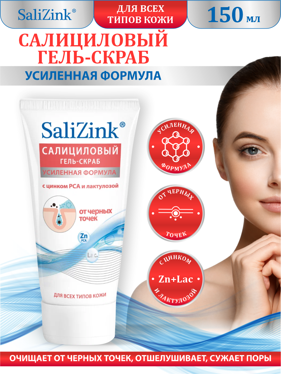Salizink гель-скраб для лица Салициловый с цинком РСА и лактулозой от черных точек , 150 мл