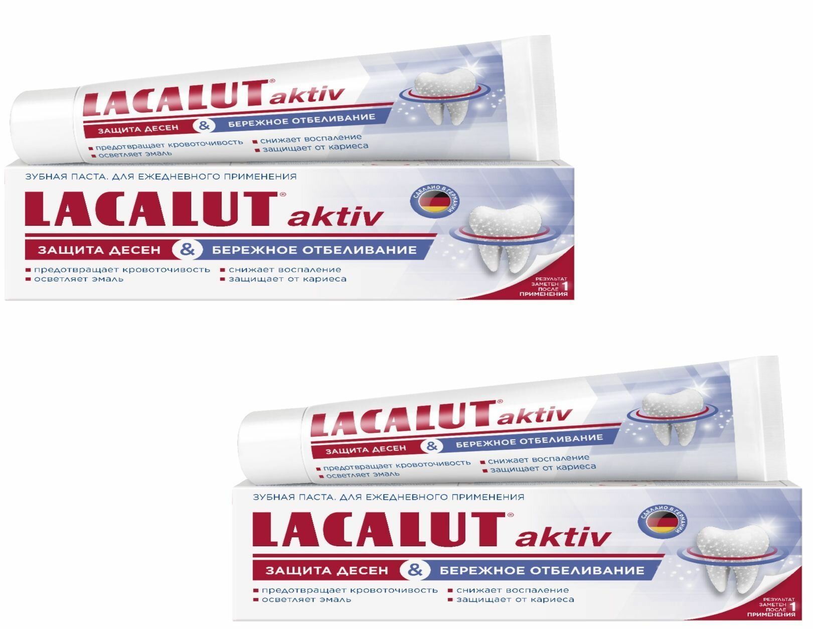 Зубная паста Lacalut Aktiv, защита десен и укрепление эмали, 75 мл, 2 штуки в упаковке