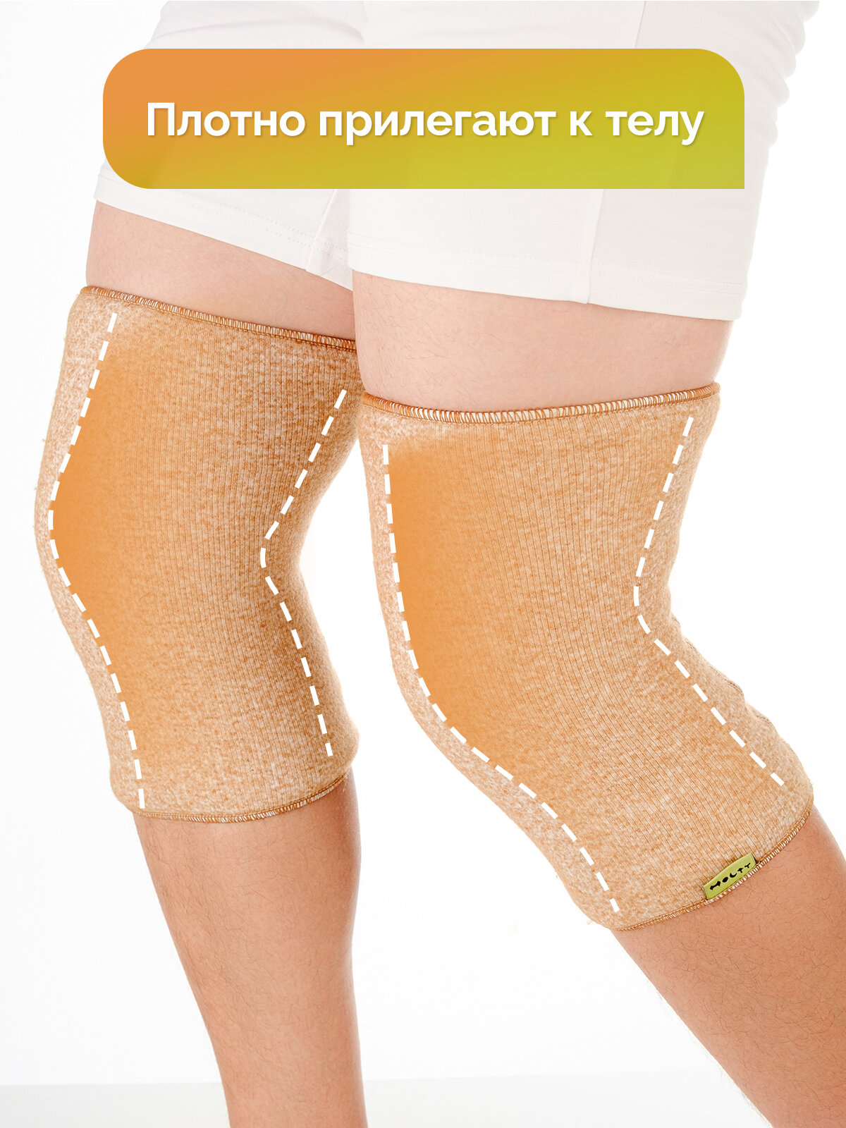 Наколенники из верблюжьей шерсти «Холти» эластичные согревающие лечебные, теплый бандаж на коленный сустав M (2 шт.)