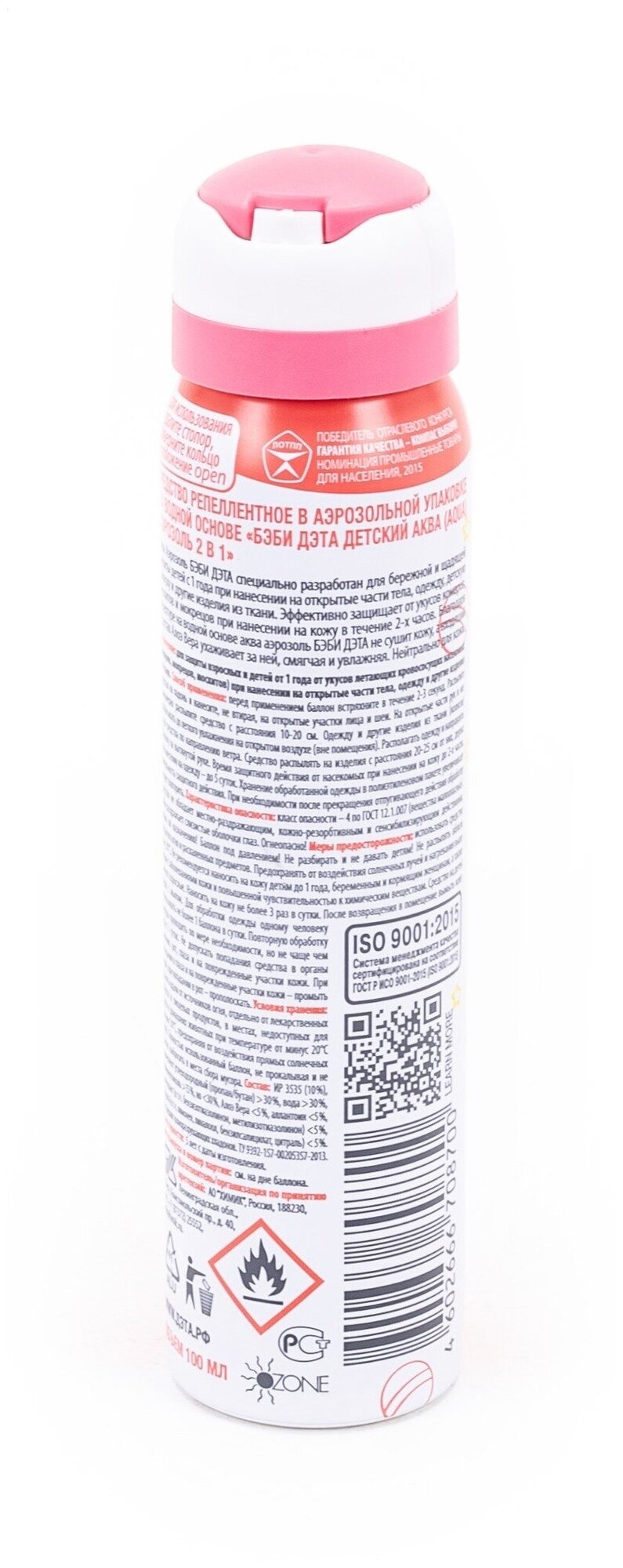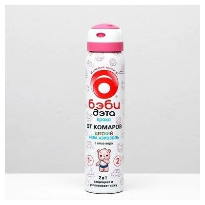 ДЭТА Аэрозоль репеллентный от комаров "Бэби Дета Аква", 2 в 1, с алоэ вера, для детей, 100 мл