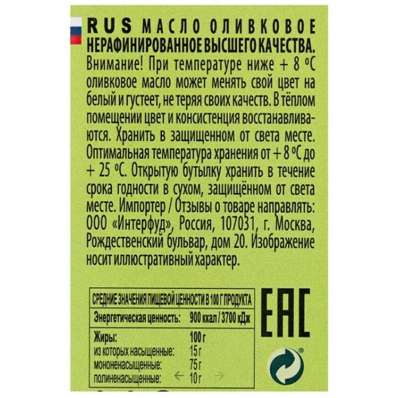 | Вид масла | оливковое |
