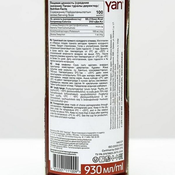 Гранатовый сок прямого холодного отжима 930 мл интересное: