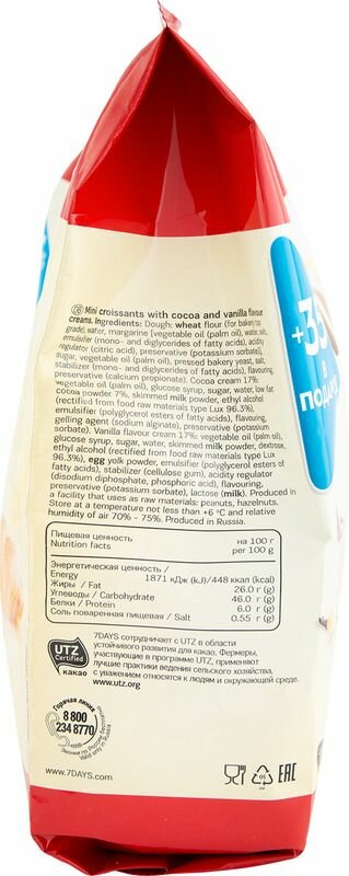 Ниже Вы можете прочитать отзывы на 7DAYS Мини круассаны с двойным кремом какао-ваниль, 300 г, ознакомится с подробными характеристиками, посмотреть интересные обзоры и фотографии на 7DAYS Мини круассаны с двойным кремом какао-ваниль, 300 г.
