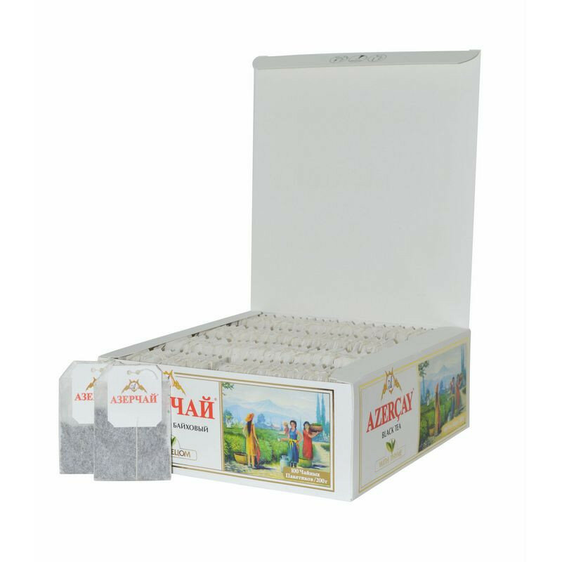 Чай азерчай черный с бергамотом, 100 пакетиков с ярлычками по 2 г