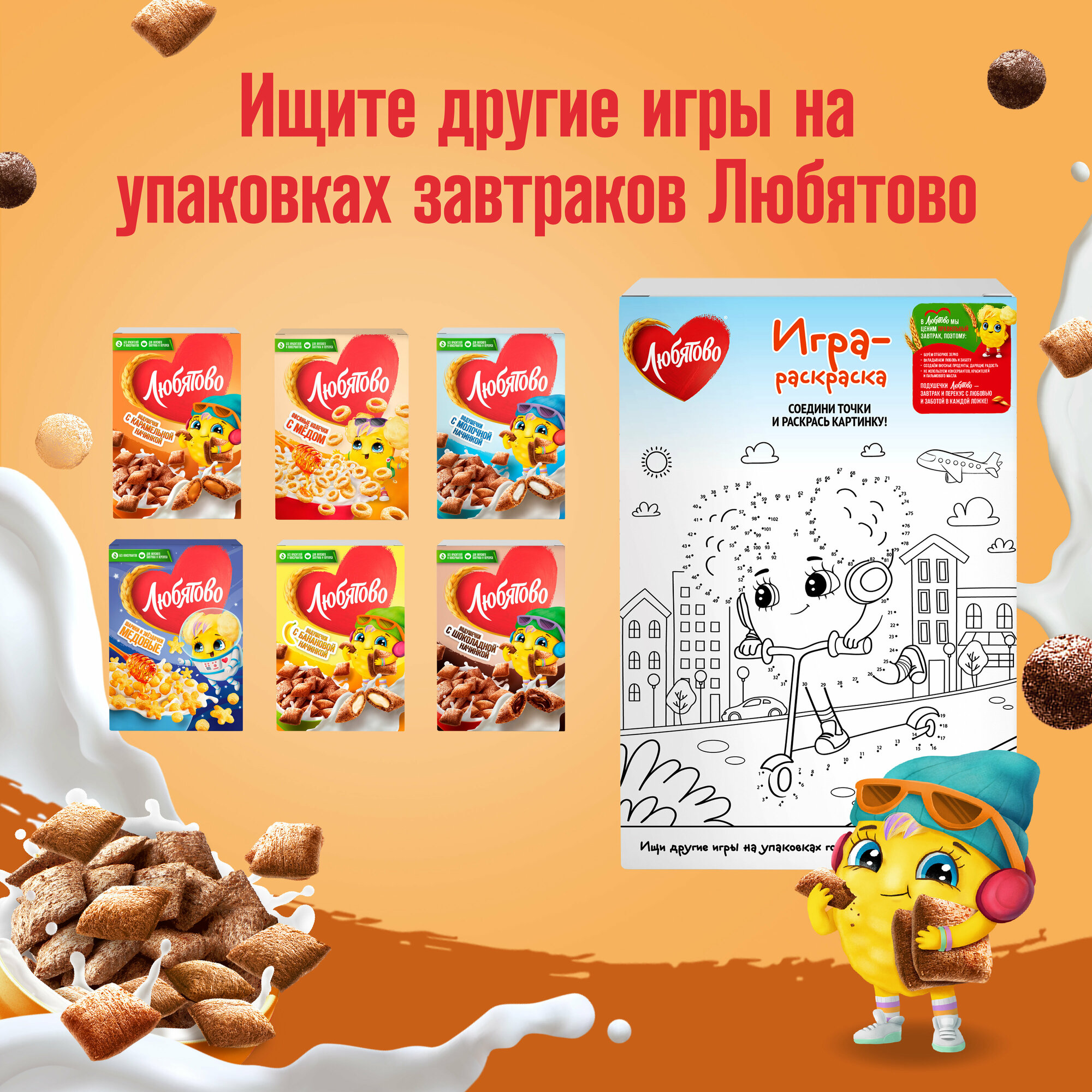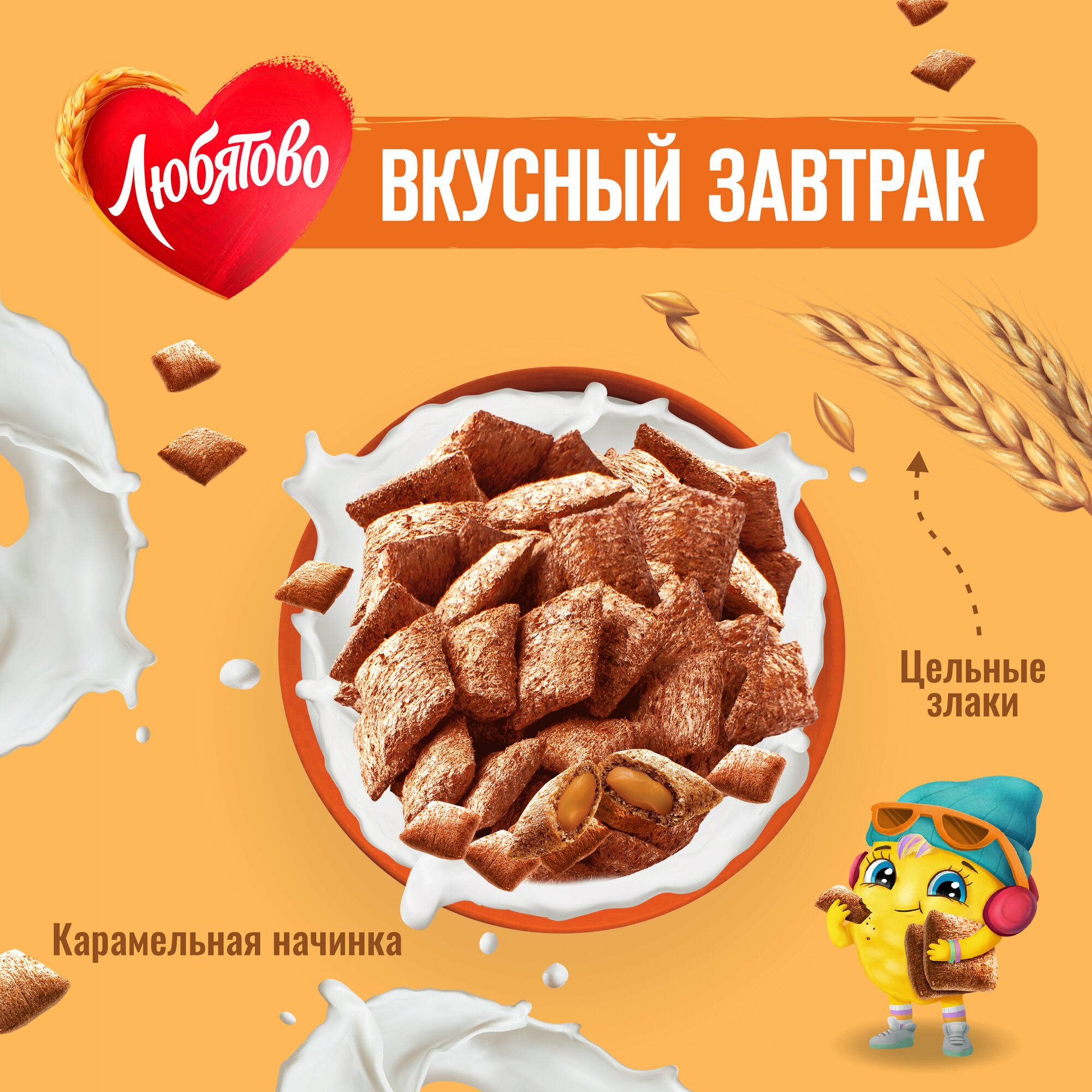 Сухой завтрак Любятово Подушечки с карамельной начинкой 220 г