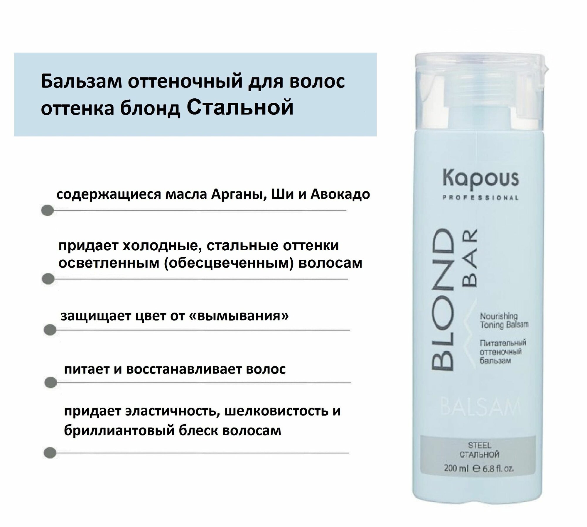 KAPOUS BLOND BAR питательный оттеночный бальзам "стальной" 200 МЛ