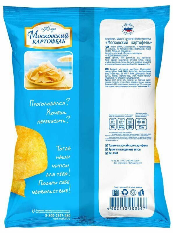 Чипсы "Московский Картофель" с йодированной солью 70г интересное: