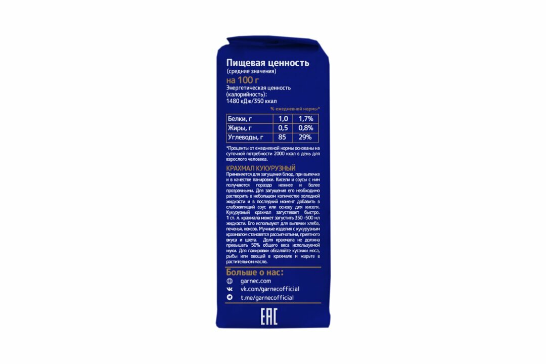 Garnec Кукурузный крахмал без глютена 400 г, пакет