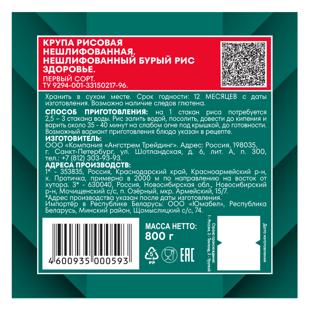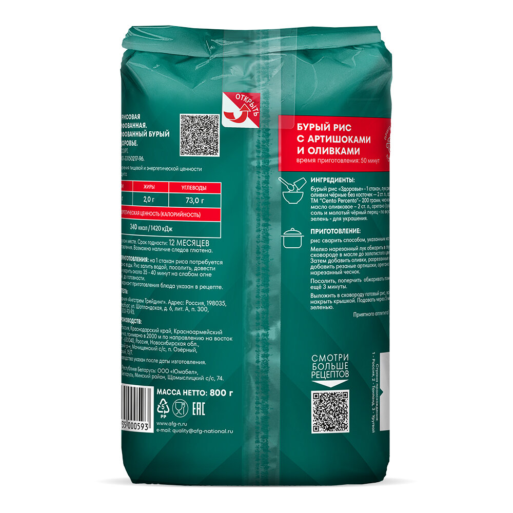 Рис длиннозерный бурый Здоровье Националь 800г интересное: