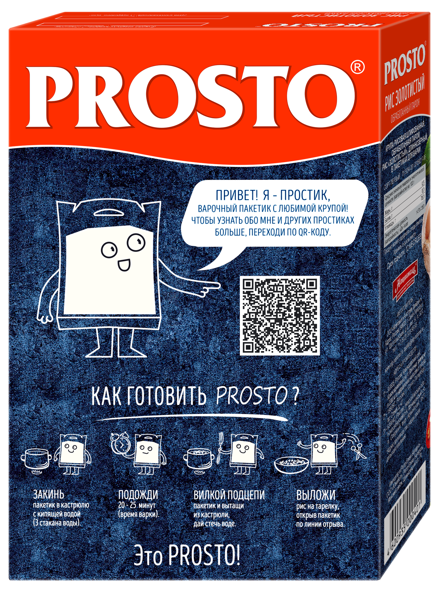 Рис PROSTO Золотистый пропаренный, длиннозерный, в варочных пакетиках, 8 порций, 500 г