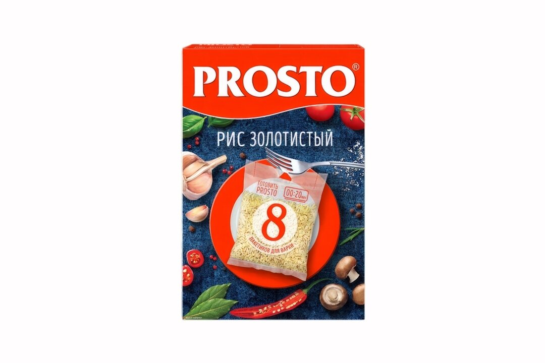 Рис Prosto длиннозерный пропаренный золотистый, 8 пакетиков по 62,5 г