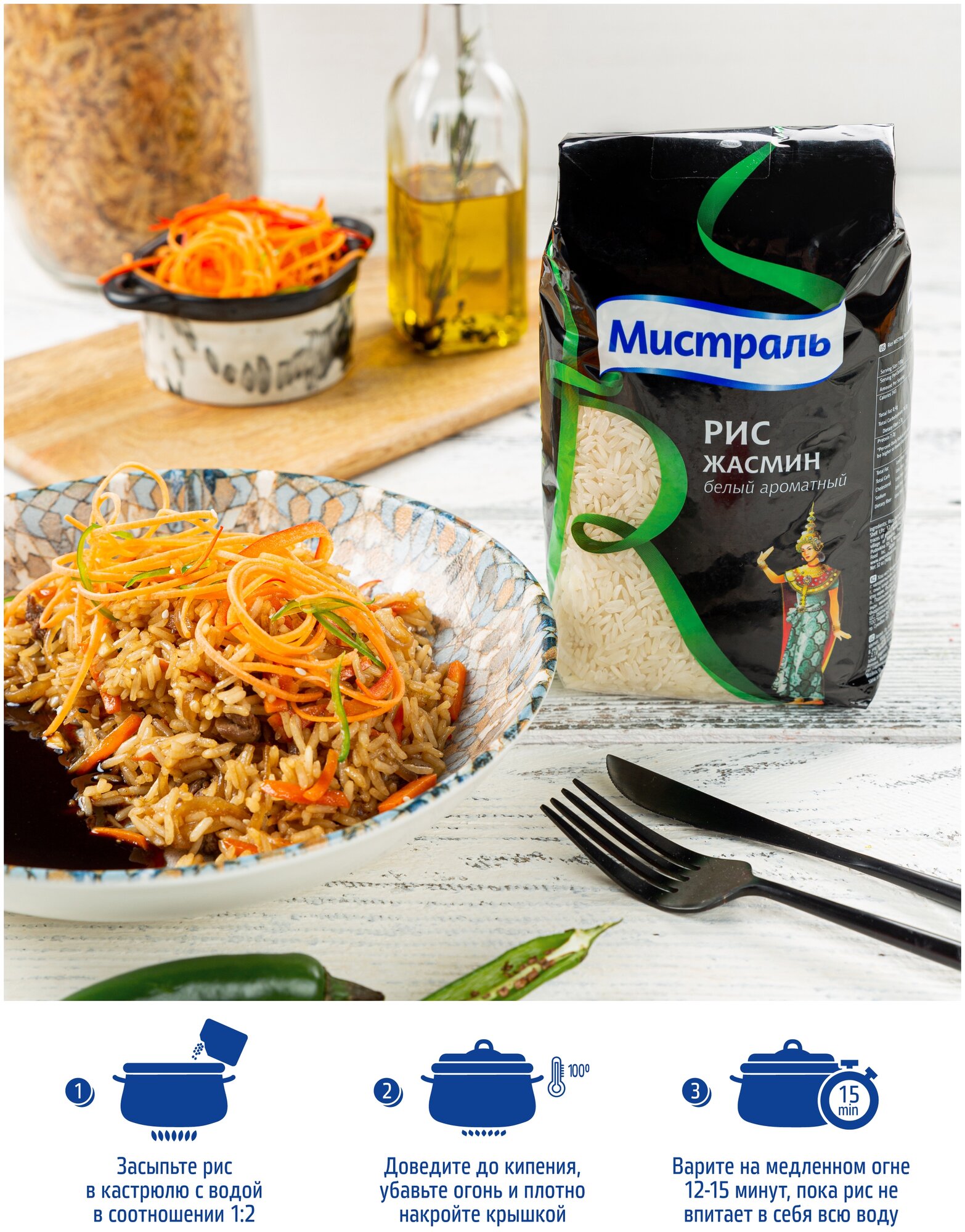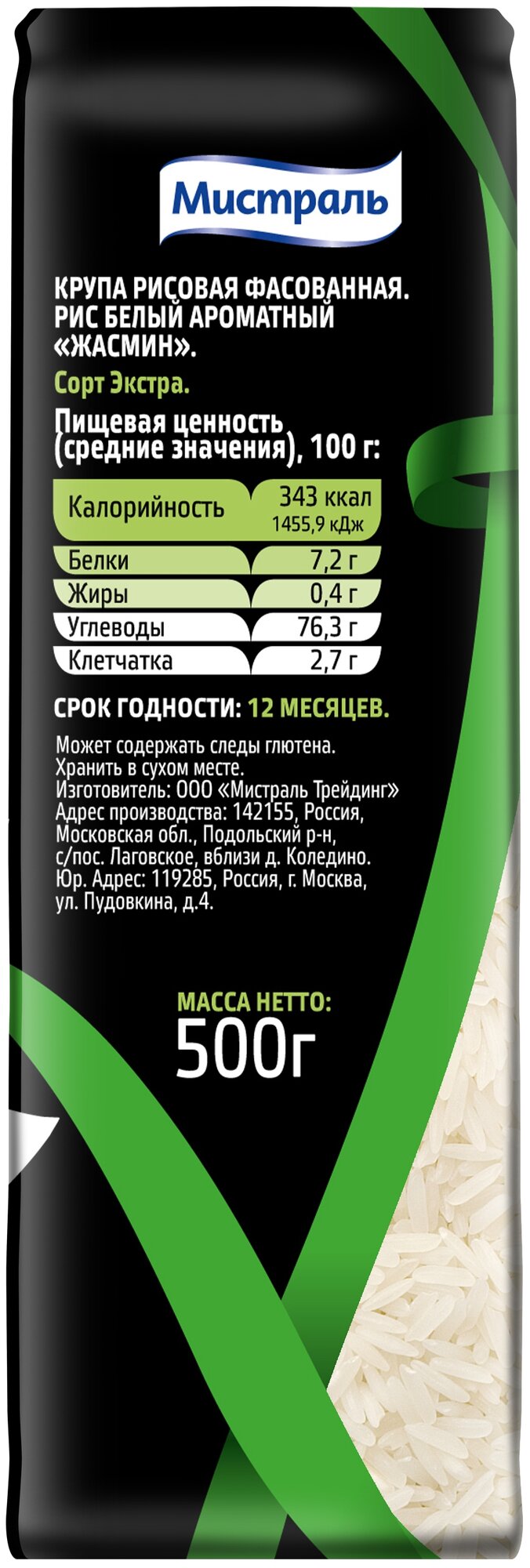 Рис Мистраль Жасмин белый ароматный длиннозерный шлифованный, 500 г