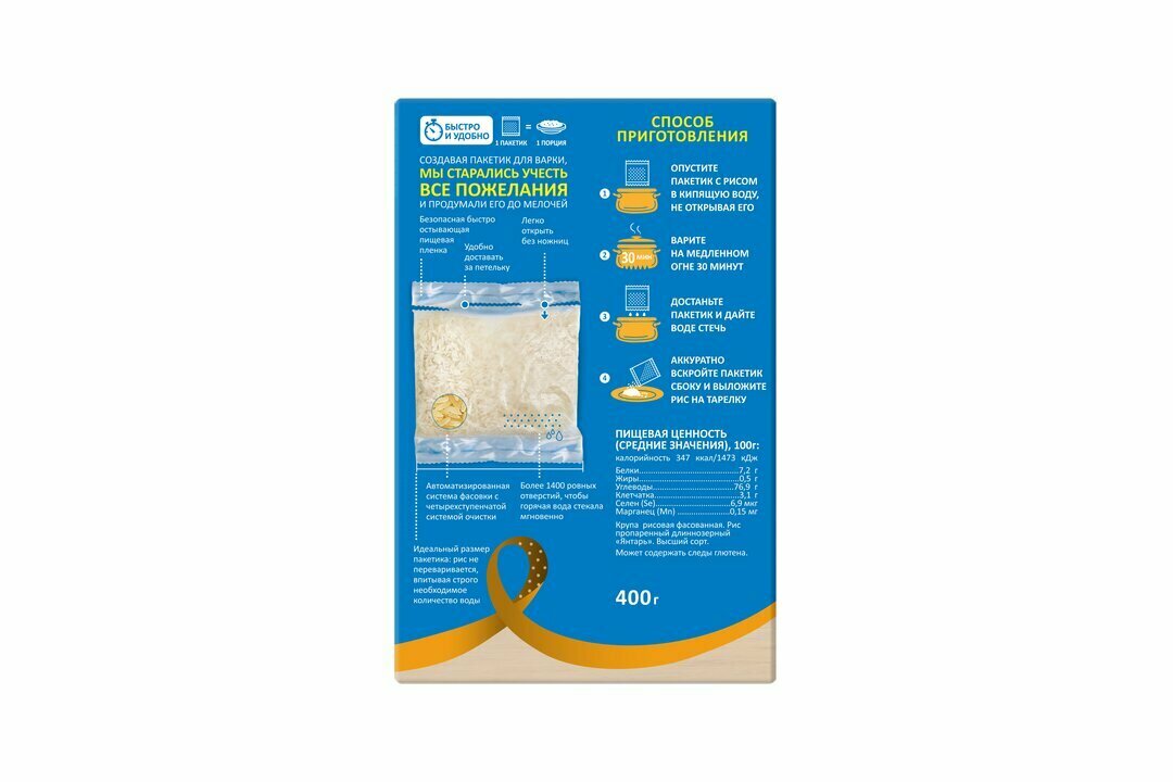 Рис Краснодарский шлифованный в варочных пакетах 4 шт * 100гр (400гр)