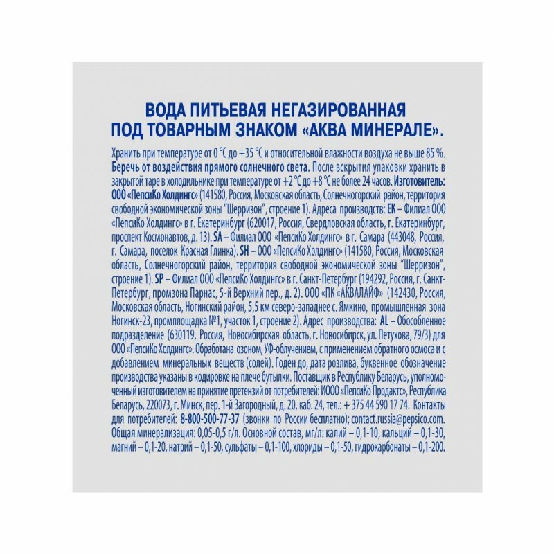 Вода негазированная питьевая AQUA MINERALE 0,5 л, 340038166 621731
